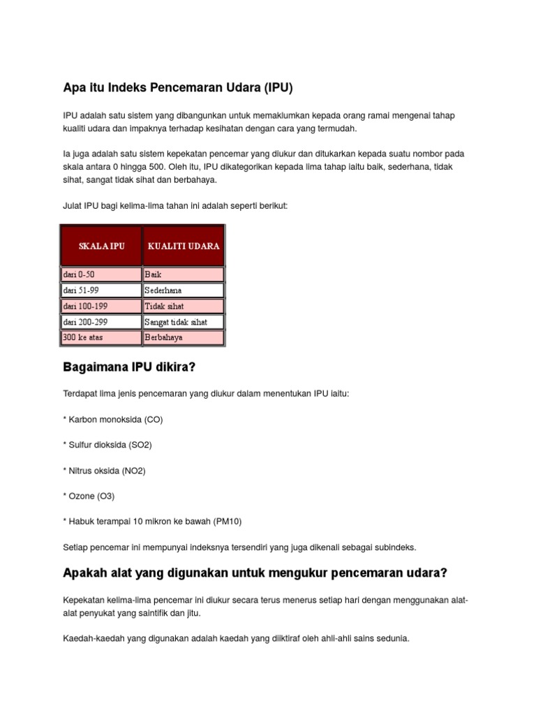 Related : Ipu Indeks Pencemaran Udara - Tahukah anda bagaimana cara untuk menyemak tahap indeks pencemaran udara (ipu)..