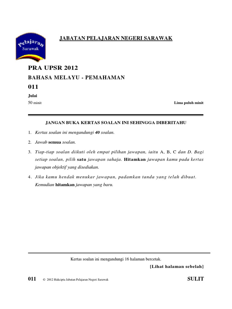 13 jabatan pelajaran negeri sarawak pra upsr 2012 bahasa inggeris paper 2 014/2 julai 11/4 jam satu jam lima belas minit jangan buka kertas soalan ini sehingga diberitahu 1. Jabatan penerangan malaysia sarawak retweeted. B sejak bilakah mak cik berpindah ke rumah di sebelah restoran makanan laut? The largest among the 13 states, with an area almost equal to that of peninsular malaysia, sarawak is located in northwest borneo island. Pusat pertahanan awam negeri sarawak.