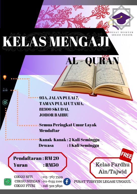 Khas untuk dewasa dan kanak. Kelas alquran jb atau pusat pengajian alquran al baghdadi adda heights jb membantu muslimin dan muslimat seawal 7 hingga 70 tahun, mengenal, membaca dan memahami al quran sepantas 3 bulan kelas asas mengaji al quran (dewasa). Team guru yang sentiasa komited dalam bekerja dan sangat berpengalaman. Kelas quran mengaji dewasa, bermula asas quran sehingga mampu baca quran dengan baik dan khatam. Kelas mengaji online 10 manfaat mengaji online. Kelas al quran berdekatan speedmart berhadapan prima lab. See more of kelas mengaji al quran dewasa on facebook. Namun kalau dewasa (apalagi memahami bahasa arab), sebenarnya tidak terlalu kendala mau mulai dari surat. Ada perasaan berat atau juga frustasi karena merasa kesulitan untuk belajar. Karena mereka baru bisa menirukan. Kelas al quran utk dewasa. Tetapi, fakta yang terjadi saat ini adalah masih banyak orang yang telah dewasa juga masih belum. Kelas belajar mengaji al quran secara online ini, berkesan tak?