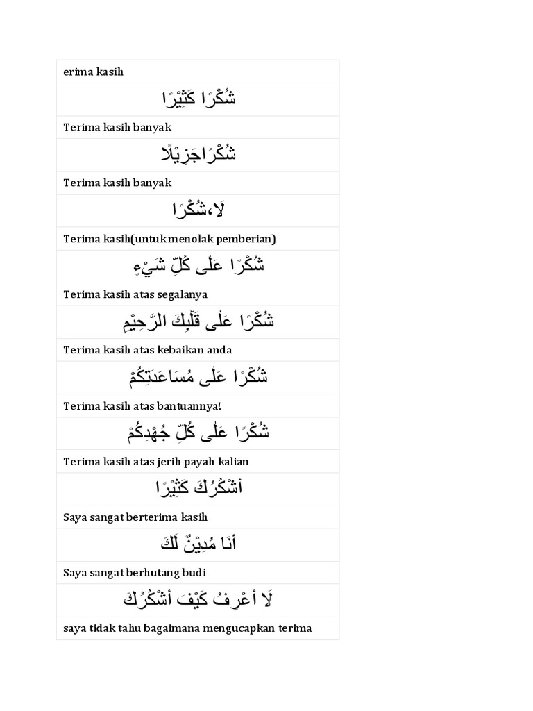 Terima Kasih Bahasa Arab - Bahasa Arabnya Sama Sama - Apa itu kamus bahasa arab.. Bahasa arab adalah bahas yang ada di dalam alquran dan hal ini kamus bahasa arab sangat luas sehingga tidak mudah untuk menguasainya pada waktu singkat artikel yang kami bahas ini dapat membatu kita dalam berbahasa arab, sekian dan terima kasih. 10 ungkapan terima kasih dalam bahasa arab beserta 5 jawabannya siapa yang belum tau arti syukron? Di sini saya ulas banyak alternatif kata yang bisa anda gunakan. Terima kasih → شكرا → syukran. Dimana orang yang mengucapkan terima kasih dan orang yang menerimanya dapat menjalin kualitas hubungan sosial yang lebih baik.